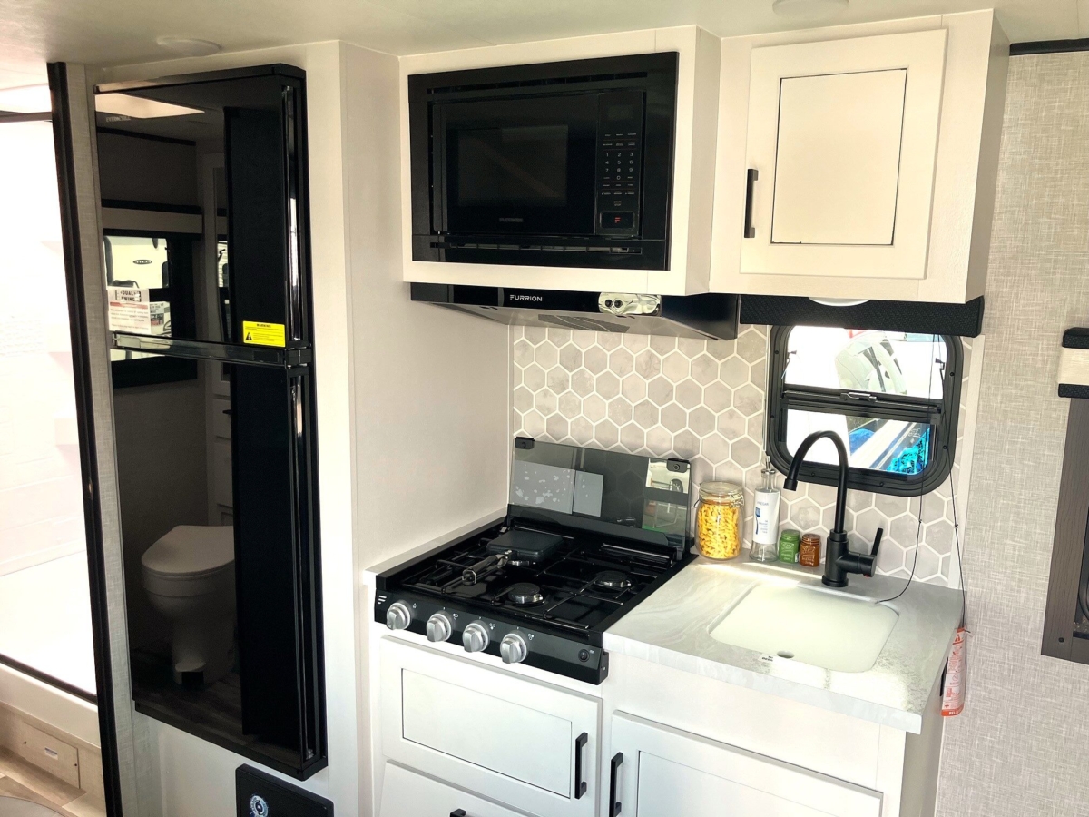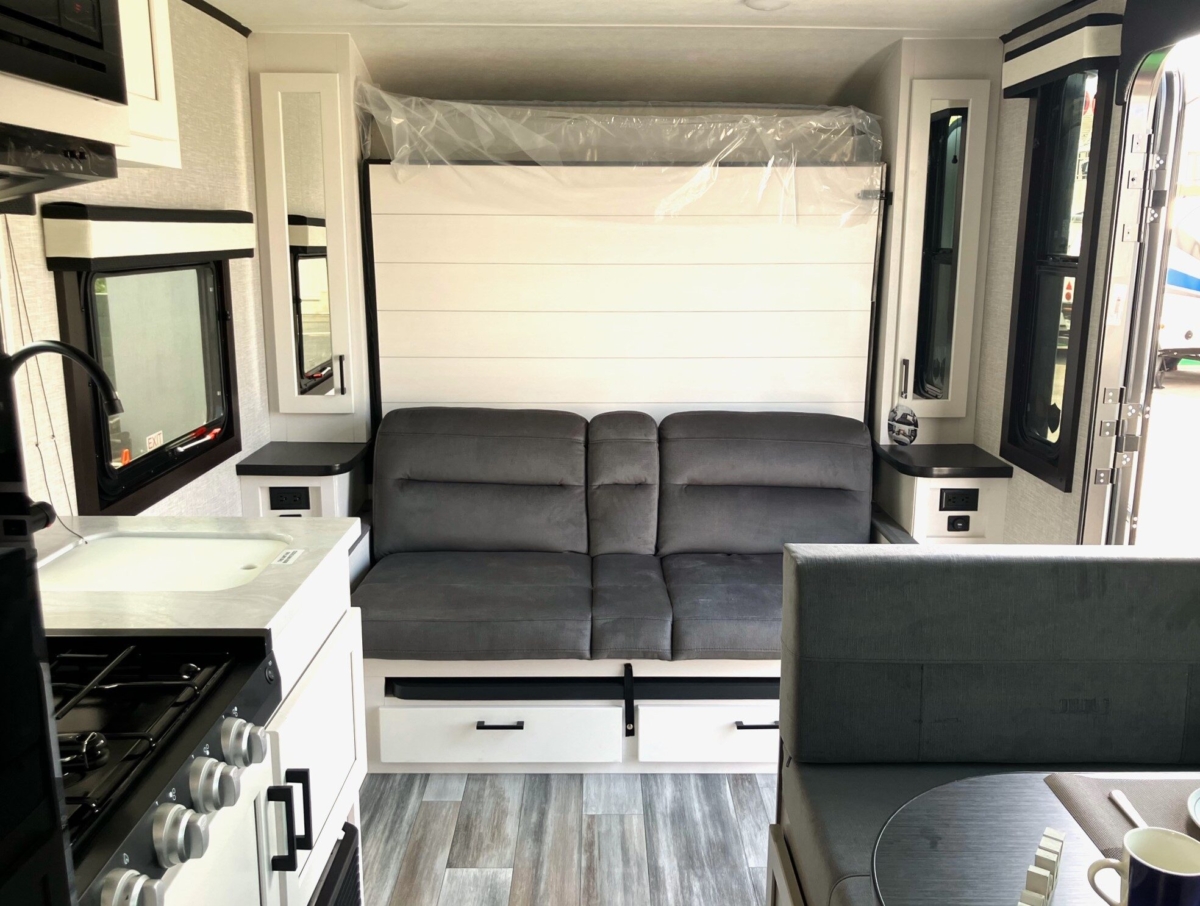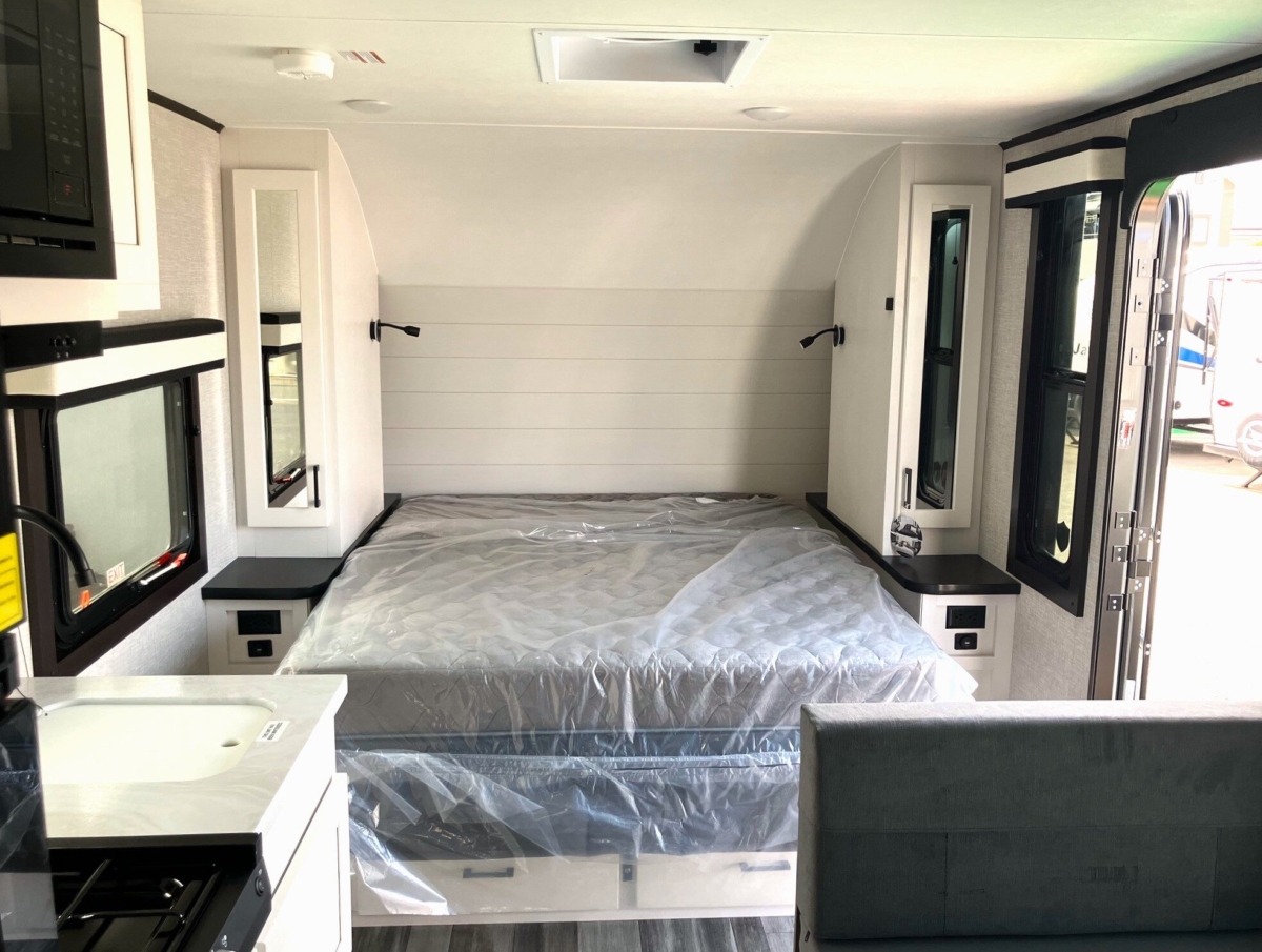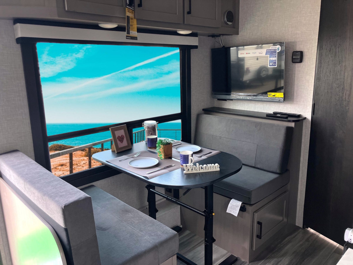 大きな窓が特徴の最大4人就寝の高級トレーラー